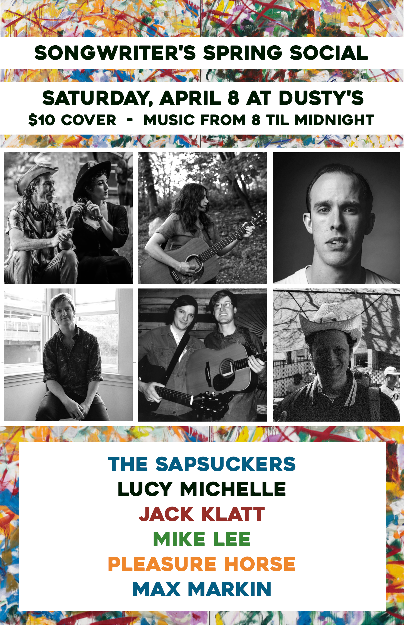 The Sapsuckers, Lucy Michele, Jack Klatt, Mike Lee (of Goatroper), Pleasure Horse, Max Markin