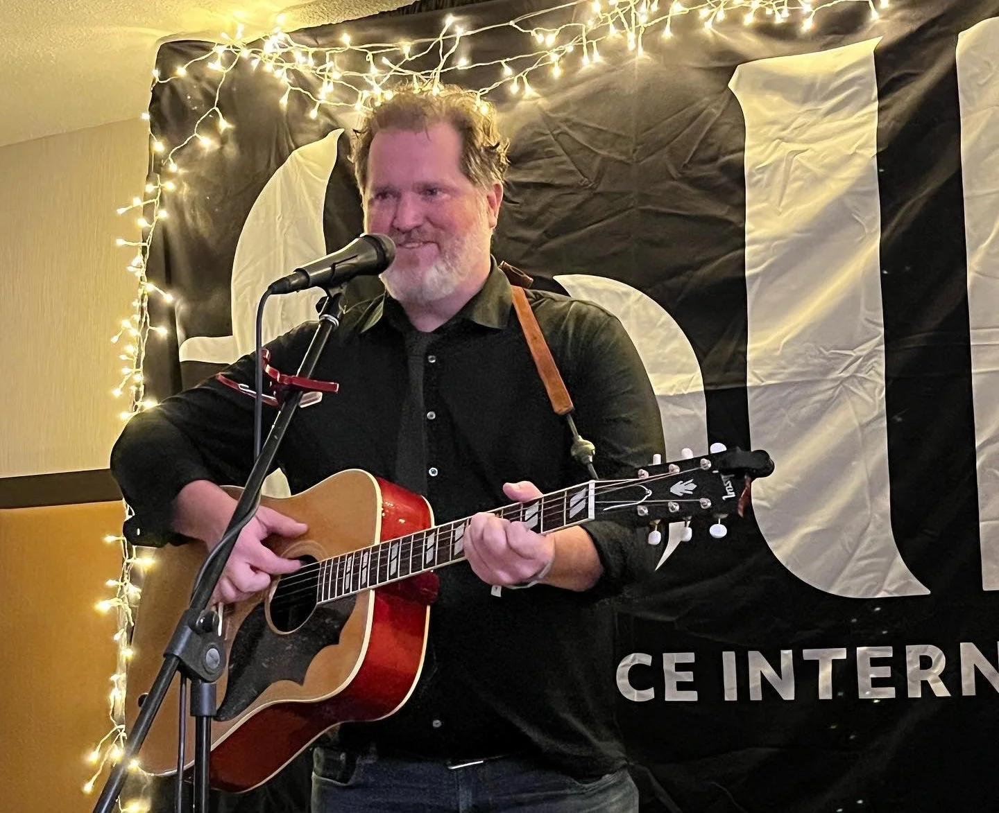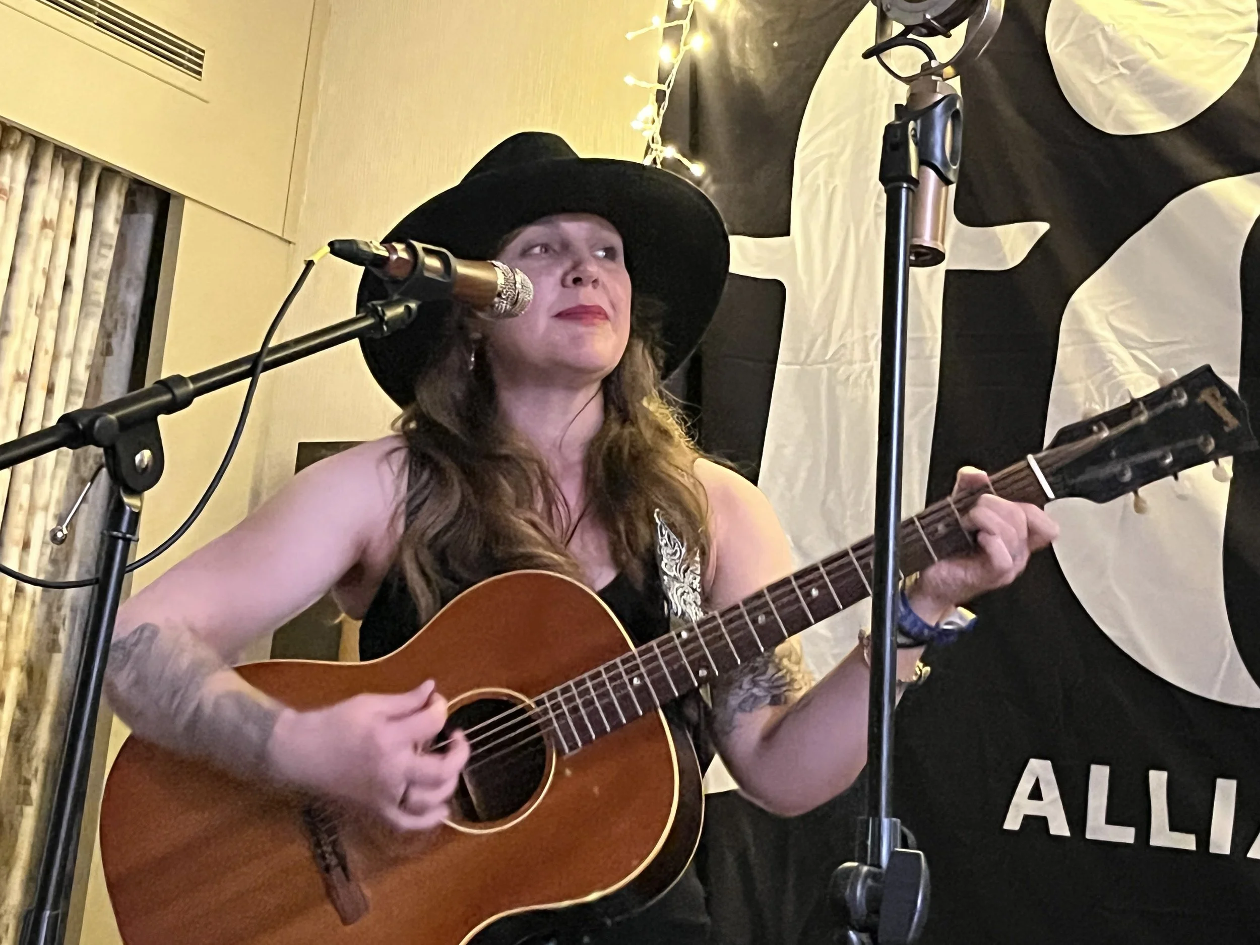 That first night was relatively quiet, since the conference didn’t begin in earnest until the next day. That was a blessing because it gave me time to get my bearings and figure out how it all worked. I hurried to the designated spot where I hoped to see my first live performance by one of my favorite artists, Vermont-based singer-songwriter Sarah King. (If you want to learn more about her, I interviewed her for an article in 2021.)