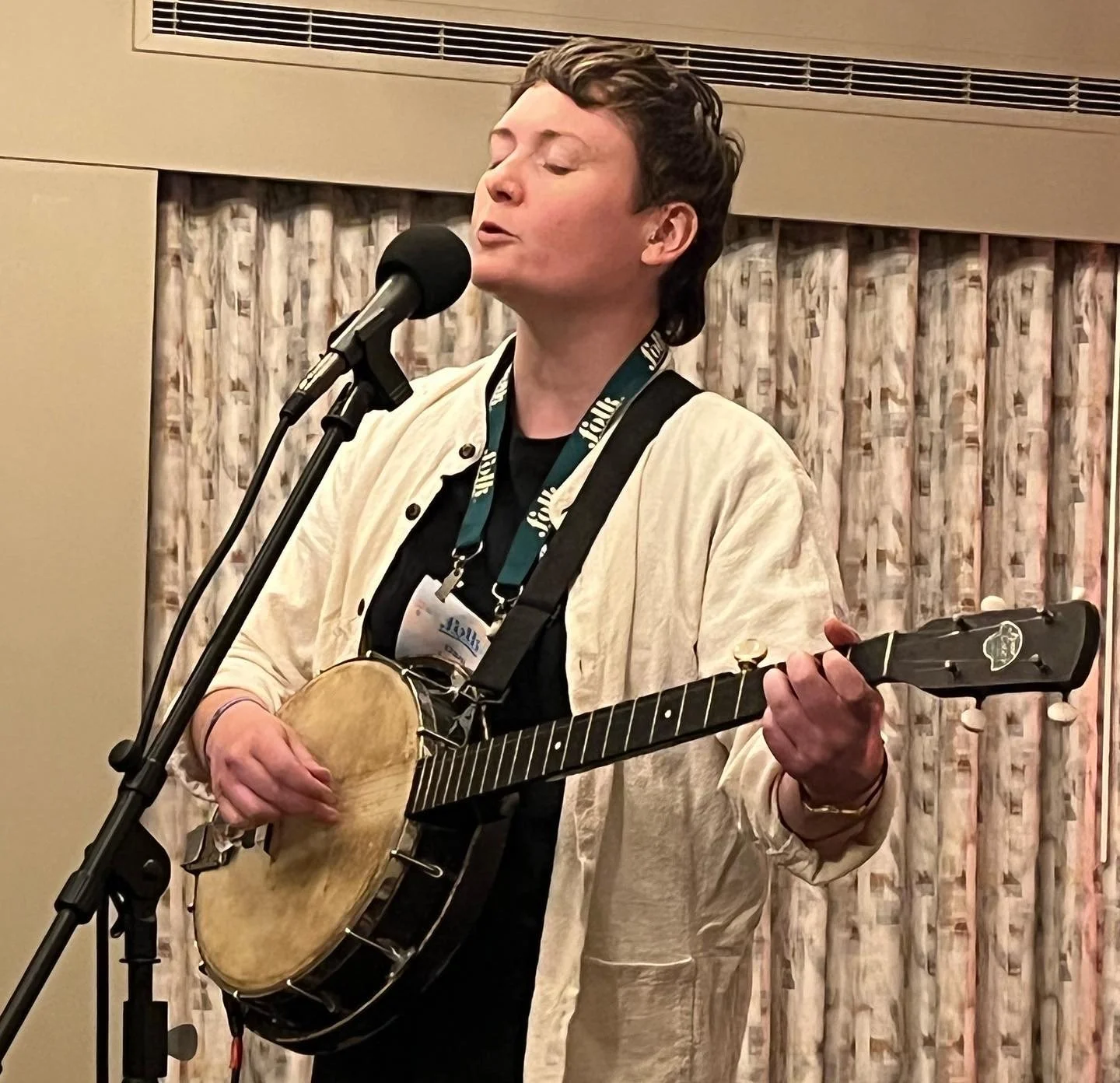 I caught my next showcase on a whim when I heard it starting as I was passing by a hotel room: a brilliant set on banjo and guitar by heavenly-voiced Irish singer-songwriter Dani Larkin. I heard plenty of buzz around this rising artist during the rest of the conference, so I was glad I’d randomly popped into the set!