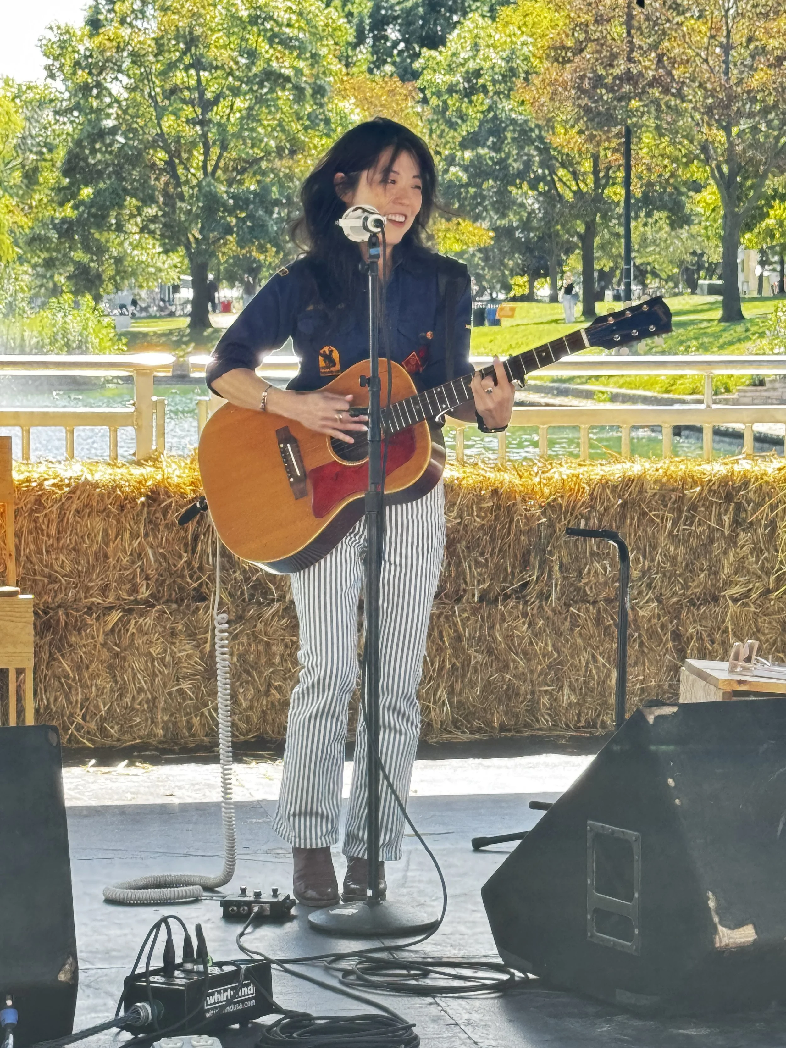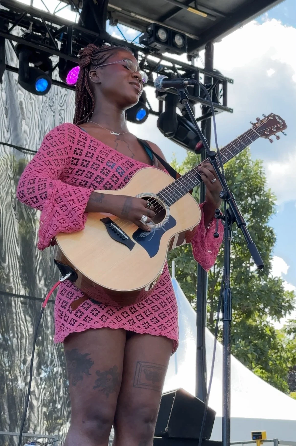 Next, it’s back to the main stage for singer/songwriter/musician/essayist/poet and former U.S. National Youth Poet Laureate and Chicagoland native (phew, that’s a lot!) Kara Jackson. Her family has come out to support her today and her striking solo performance is filled with emotion. She sings of her personal journey through life and the challenges she’s endured as a queer Black woman. It’s hard to believe someone as young as she is (25!) has experienced and accomplished so much already. It will be exciting to see what comes next for her.