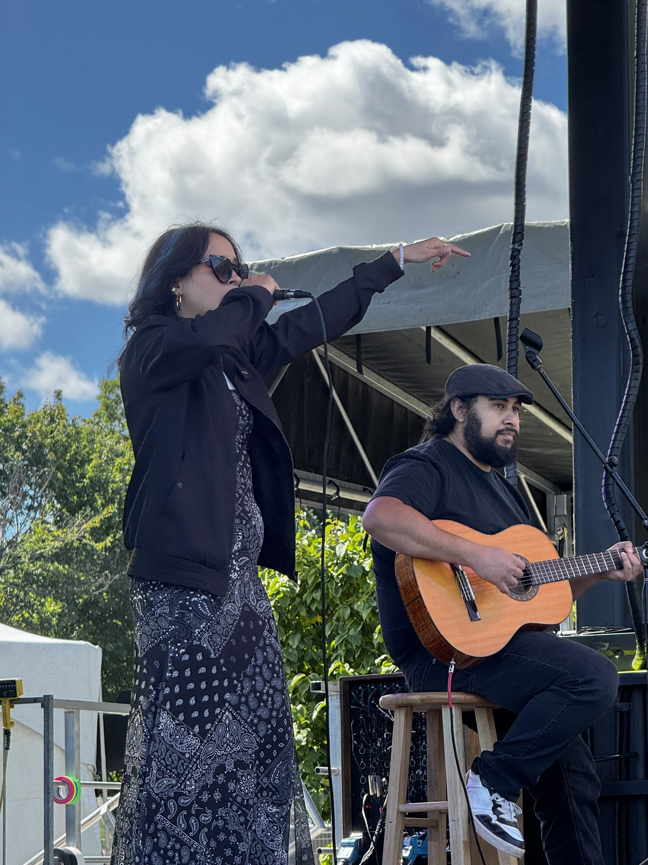 Next up is the Mexican singer/songwriter and creator of Folkpirano, a new genre of music, Dámaris Bójor. She takes the Main stage and immediately commands attention. A blend of folk music and Campirano (regional music of Sierra de Sonora, where Bójor is from), Folkpirano has a driving guitar-propelled beat combined with rich melodies and uncompromising lyrics. Her recent album Folkpirano includes the track “Extranjero,” which she performs today, that illustrates—with piercing detail—the experience of being an immigrant. Every song she sings is filled with fire and the passion of her convictions.