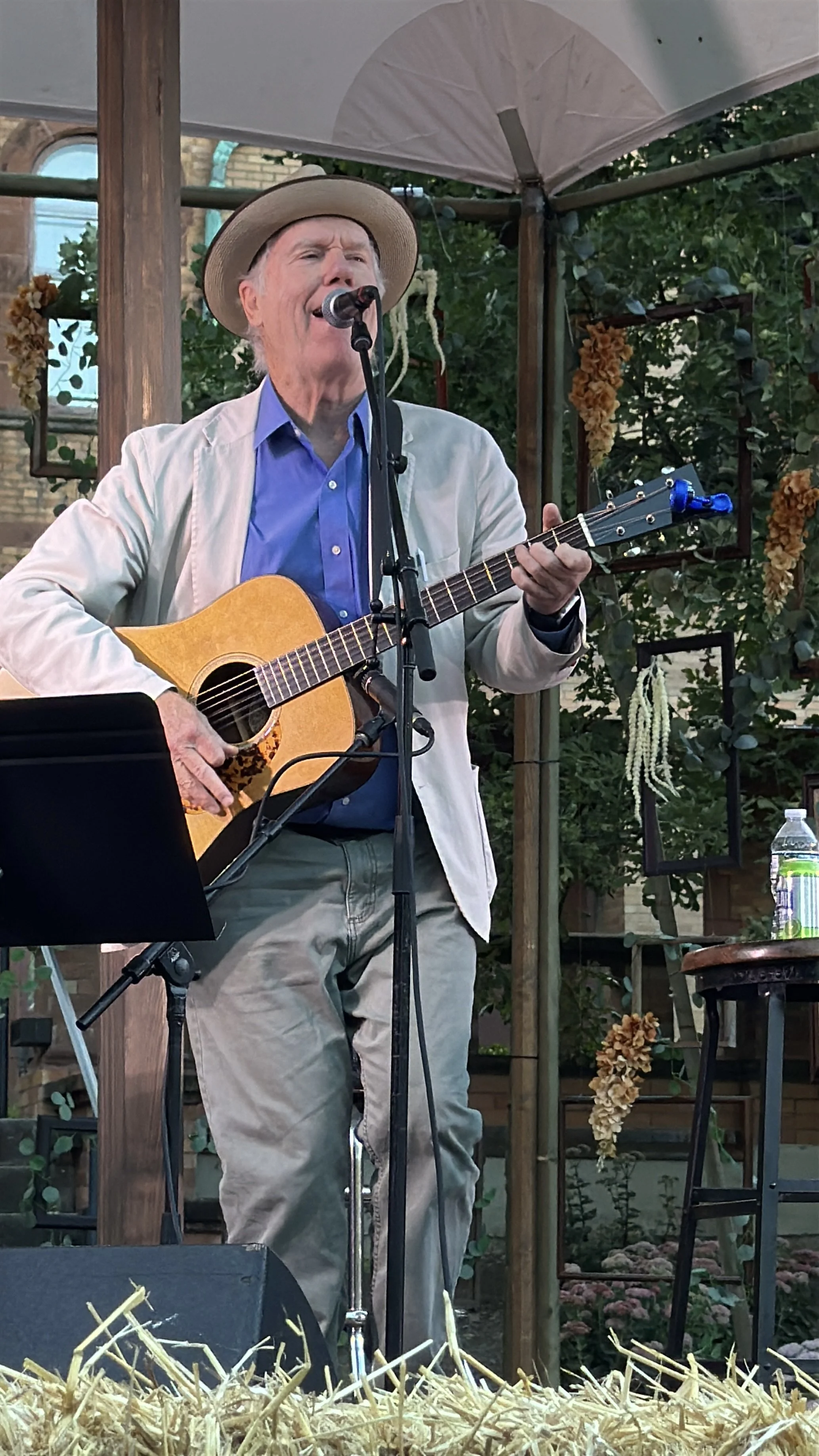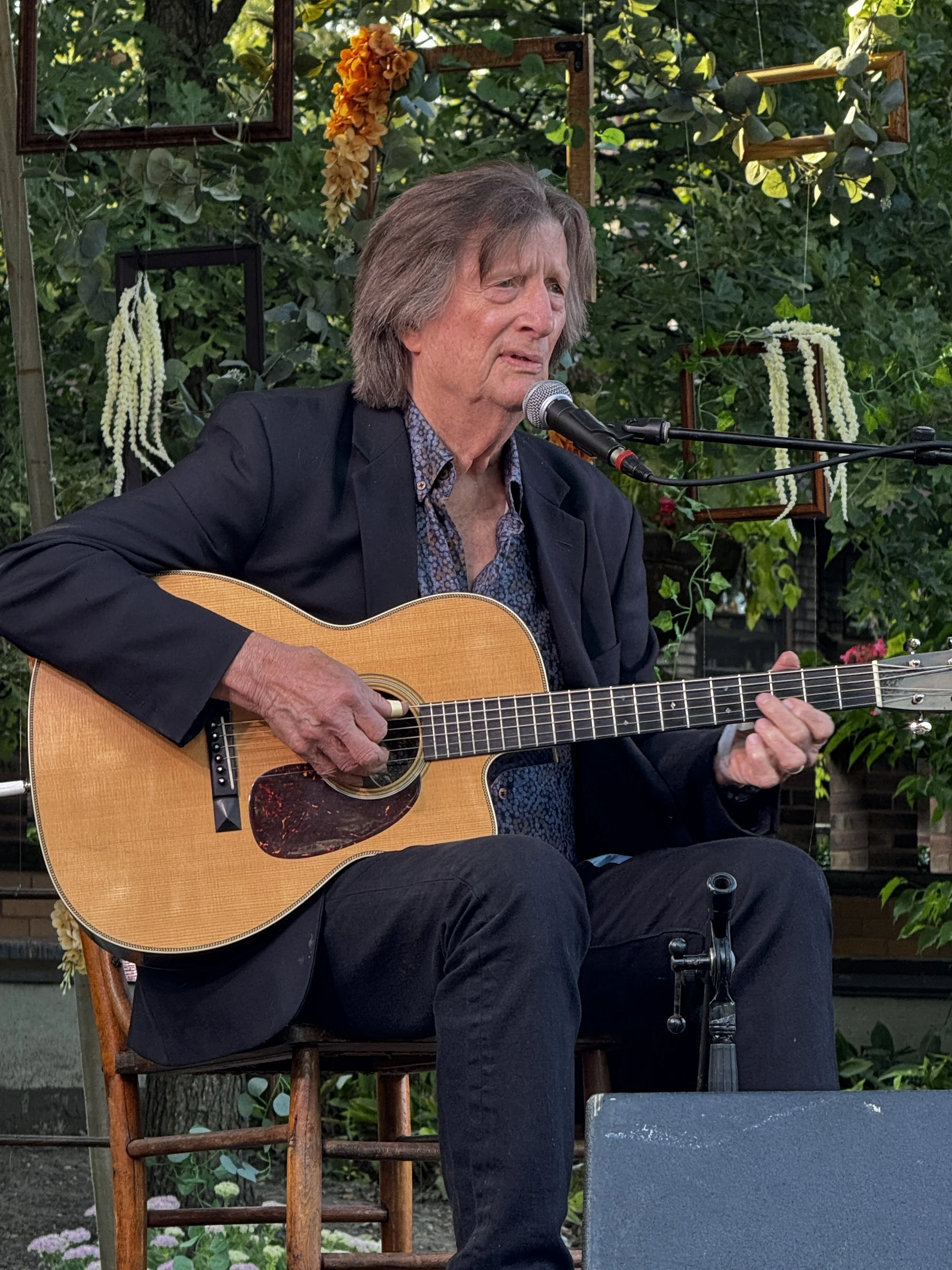 Although I’ve seen him a bunch of times before (and interrupted his reverie to say hello earlier while he sat on the bench watching sparkling Lake Michigan this morning), it’s always a delight to see Minnesotan Charlie Parr perform. I always feel that his guitar playing sounds like the notes have all been placed in a popcorn popper—they bubble and bounce around yet somehow stick together to make such enjoyable tunes. Today, he plays on a special guitar, one that was passed down to him from the late Spider John Koerner, a Twin Cities legend and mentor to Bob Dylan. Parr sings “817 Oakland Avenue” from his 2021 album Last of the Better Days Ahead, which encourages us to “spread it around” (love, light, comfort, shelter, food, support). An important reminder for us all.