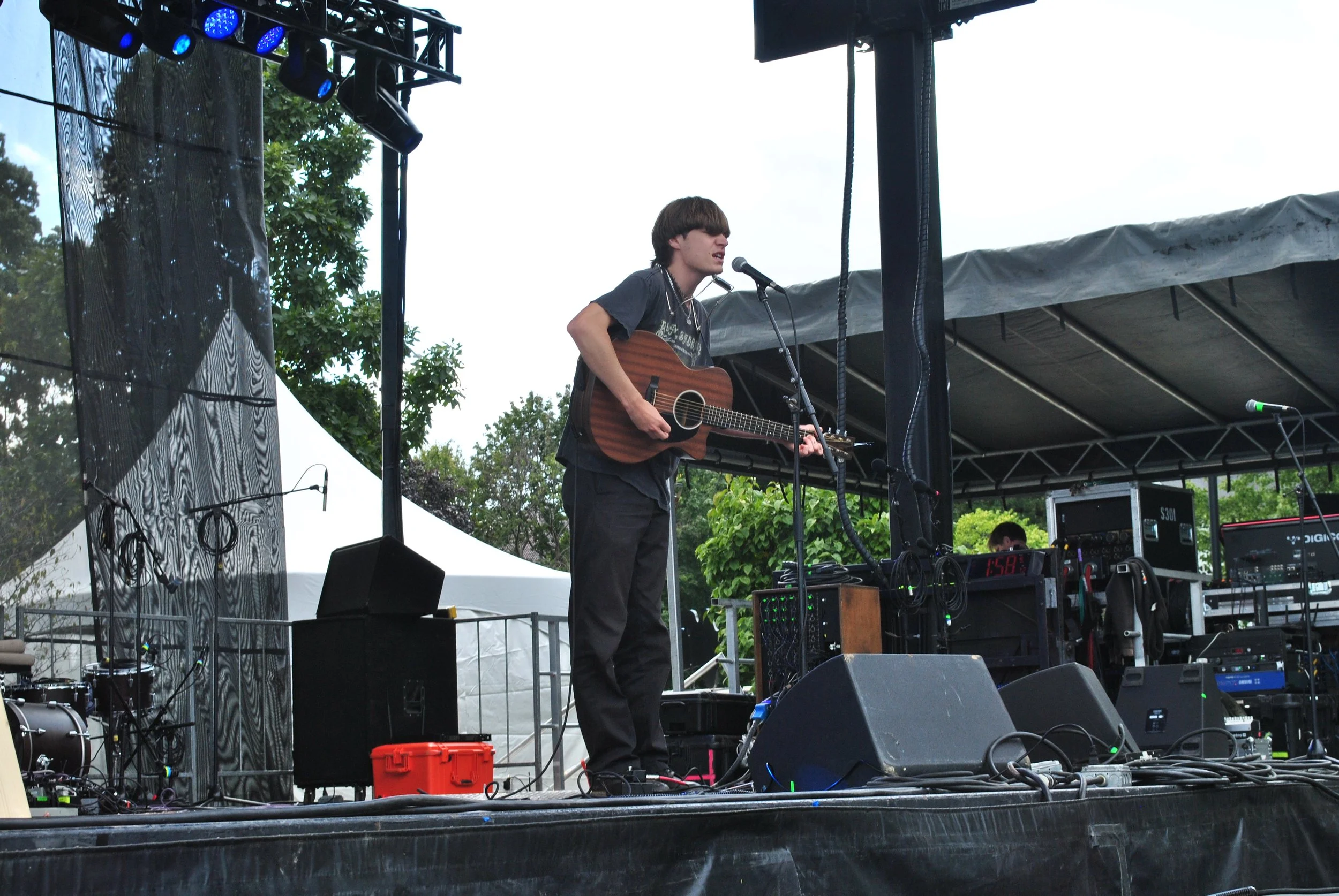 Next, I walk up to the Main stage just as LA-based emo/folk singer-songwriter Truman Sinclair is starting his set. Often, when one thinks of folk music, the mind goes to history and heritage. Sinclair shakes up that image with his raw energy and powerful voice, bringing youth, love and heartbreak into the folk equation with his captivating lyrics and music.