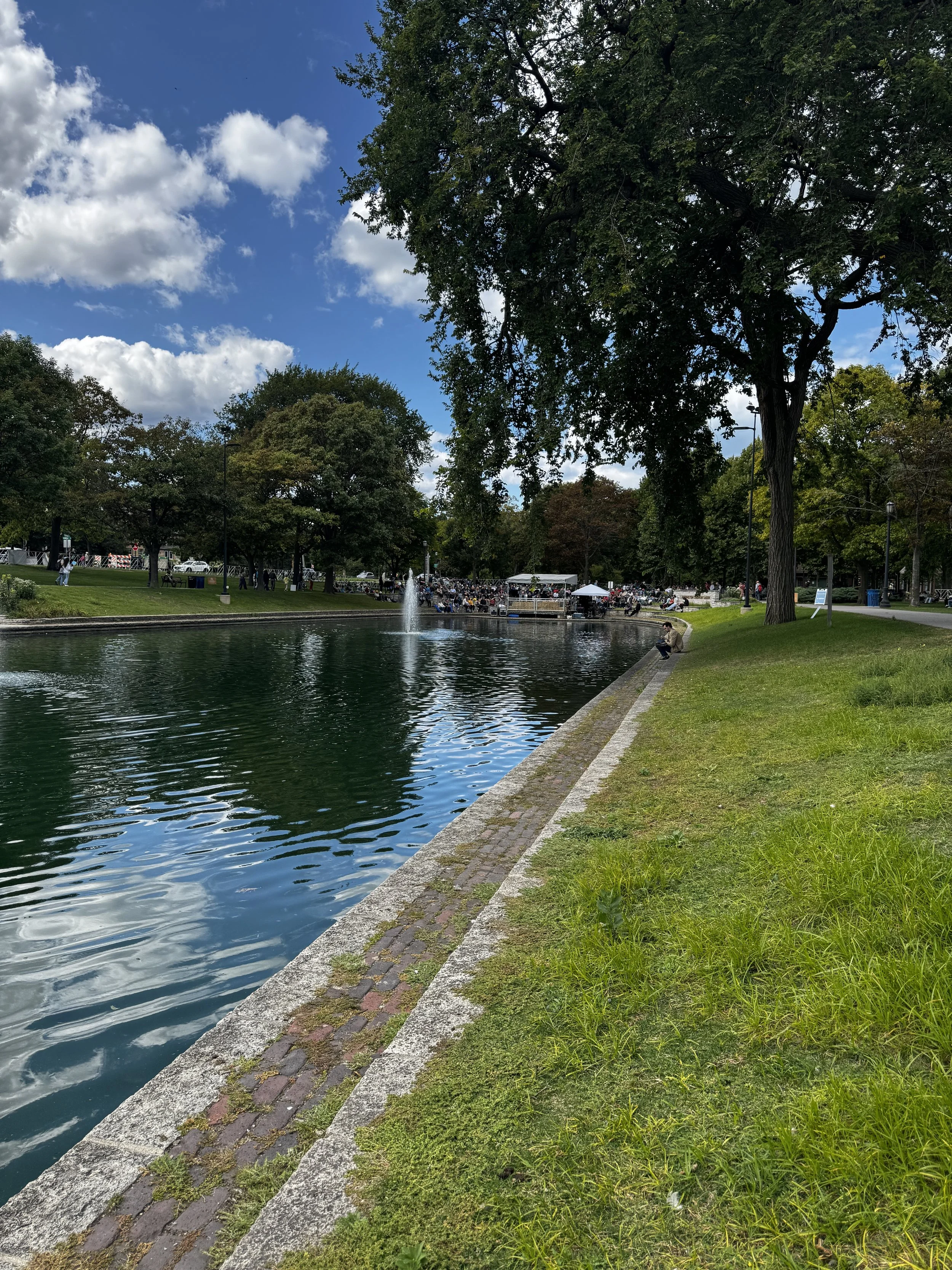 It’s a lot sunnier when I arrive on Sunday, though the temperature is every bit as pleasant as the day before. The ducks have quickly acclimated to having all these people around and though there are signs requesting not to feed them, I’m pretty sure I saw a gaggle of kids slipping them some chips.