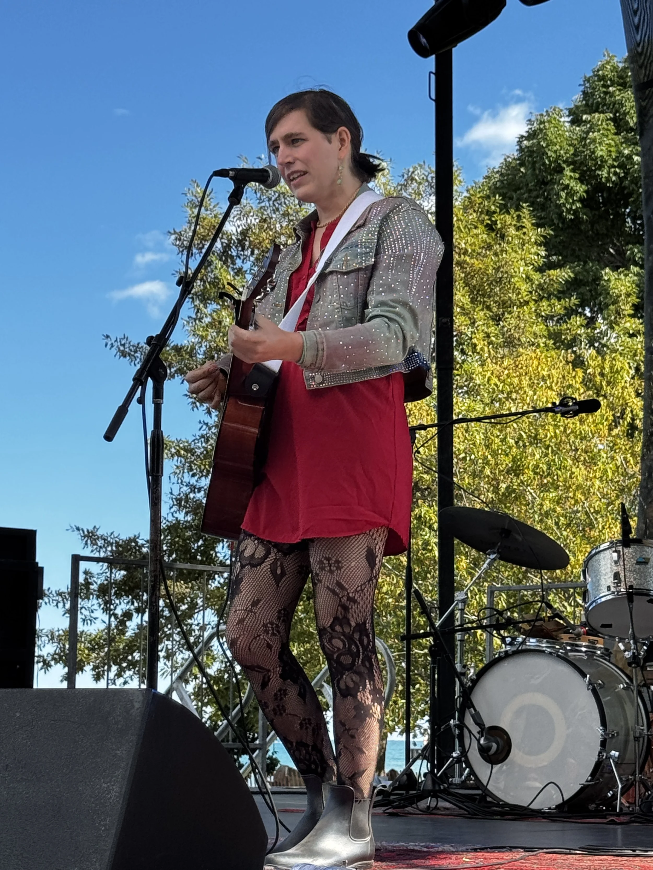 For the second year in a row, the Evanston Folk Festival has managed to get Mother Nature to bestow absolutely perfect conditions for the nascent musical gathering. It’s about 64°, partly cloudy, with a gentle breeze at Dawes Park, which borders a quiet beach in Evanston, IL, right on the edge of Lake Michigan. I’m running late and sadly missed the opening notes, but the vibe is immediately welcoming, easy, and joyful. I can already tell that this year there will be an even bigger turnout than last. People have heard the message: the EFF does folk festival right.