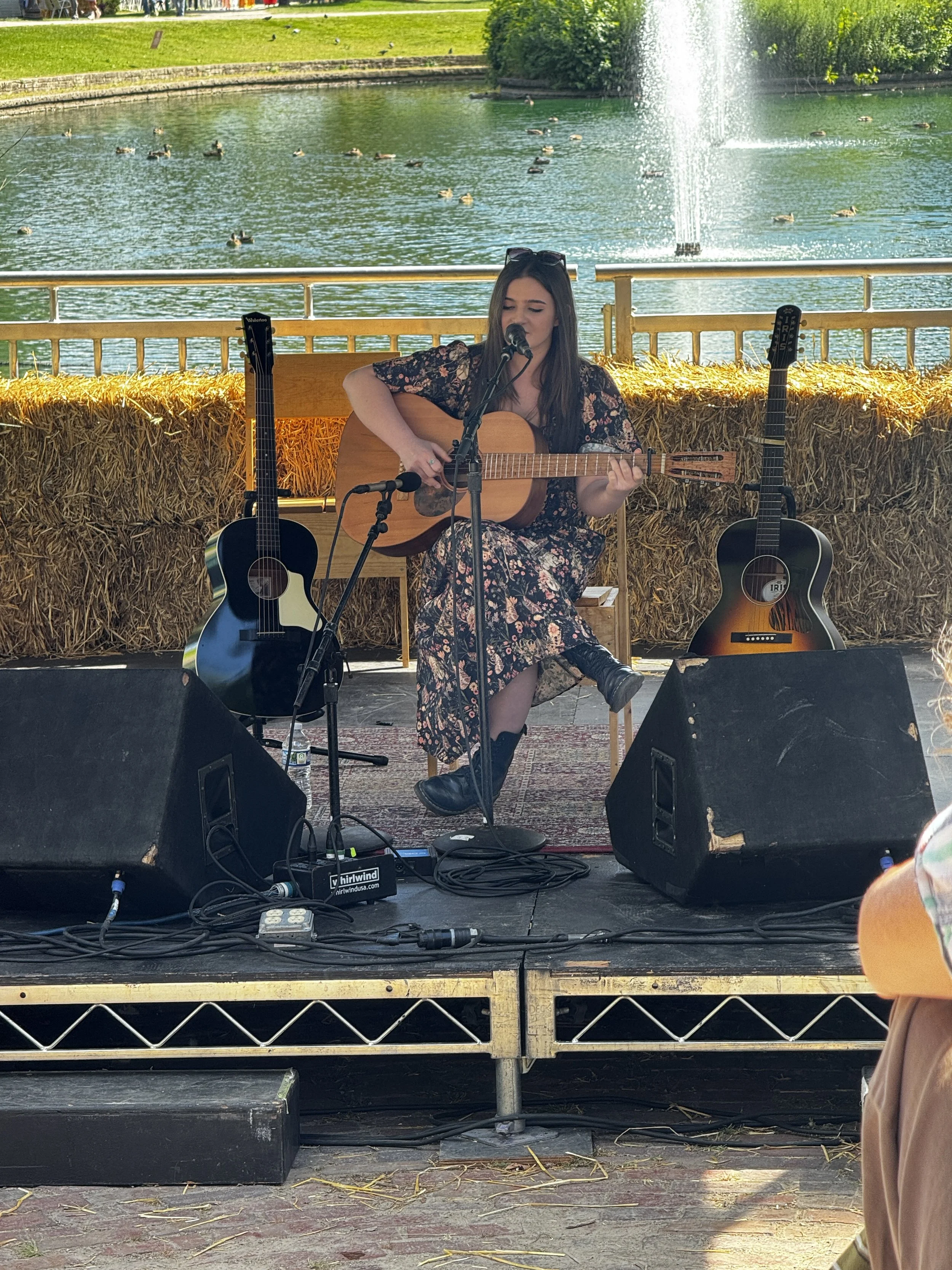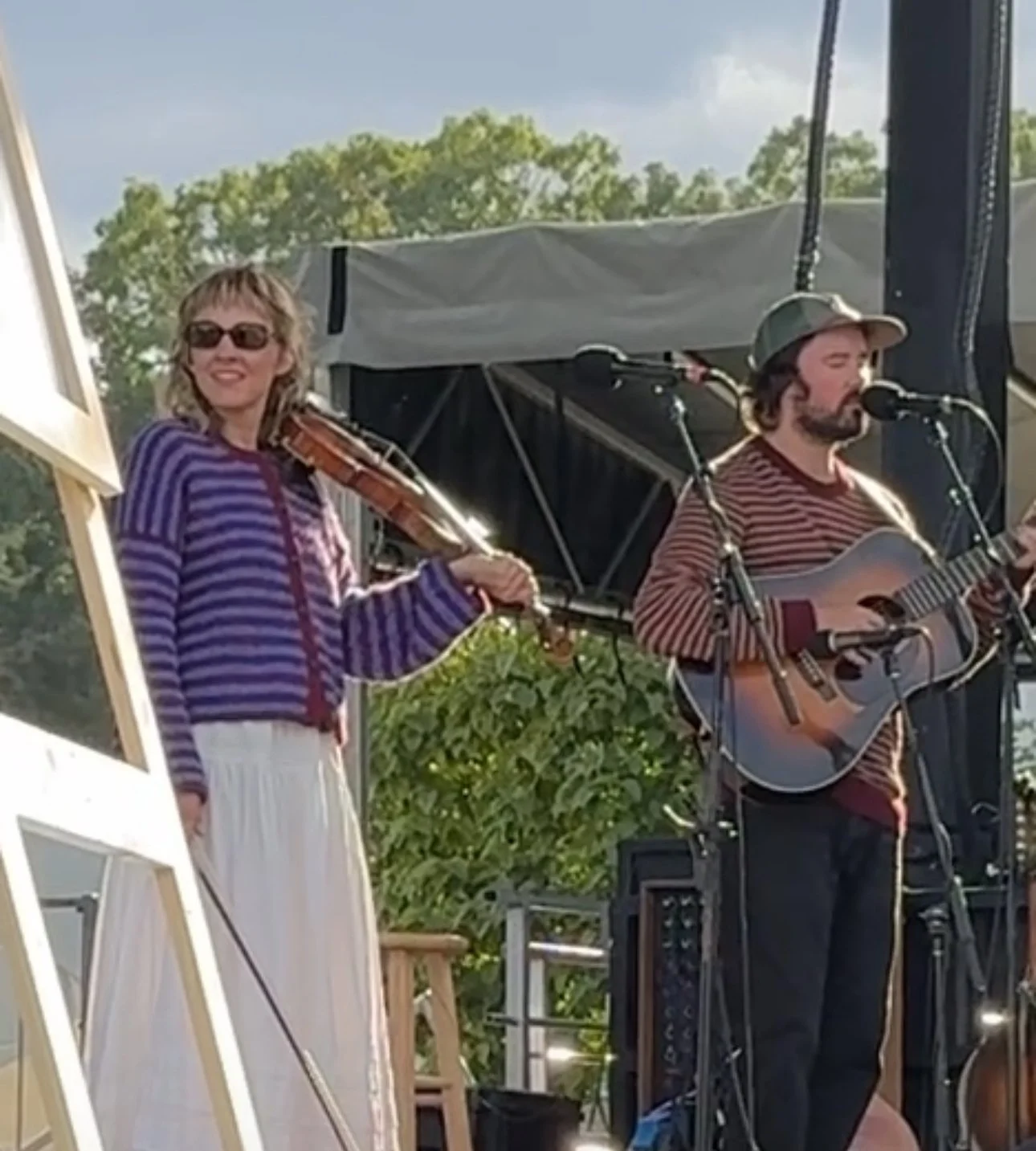 I walk past the concession stands just starting up and find a cozy spot on the lawn right in front of the first act of the day, The Wildmans, a band led by a brother/sister duo from rural Virginia. It’s still kind of quiet at the festival since it’s just noon on a Sunday, but these folks knocked my socks off! Aila Wildman plays fiddle while her brother, Elisha, plays guitar. They sing beautiful harmonies of their own creation, but also a few covers (The Flying Burrito Brothers, among others—Aila has a tattoo on her forearm that reads “Hot Burrito #2,” which they played today; Elisha has “Hot Burrito #1” on his). Their energy is electrifying and I feel like I’m witnessing a special moment—I have no doubt their star is about to skyrocket.