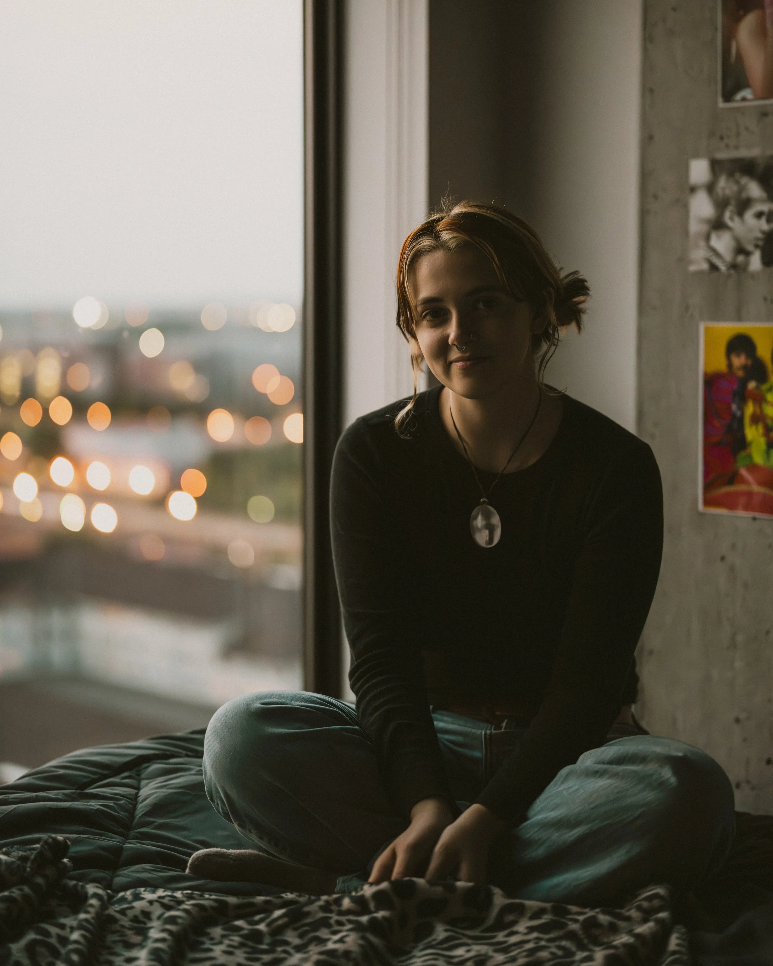 Josie’s current days are filled with little “side quests,” as she calls them, like exploring new coffee shops, pickleball courts, and thrift stores. This has grown her sense of independence in a life that continues to be filled with anticipation of the opportunities in front of her. And always, there’s her bedroom window. The place where she returns every day. “Excitement,” she whispers. “That’s what I feel most. Sometimes I just stare out and think, oh my gosh, this is my life.”
