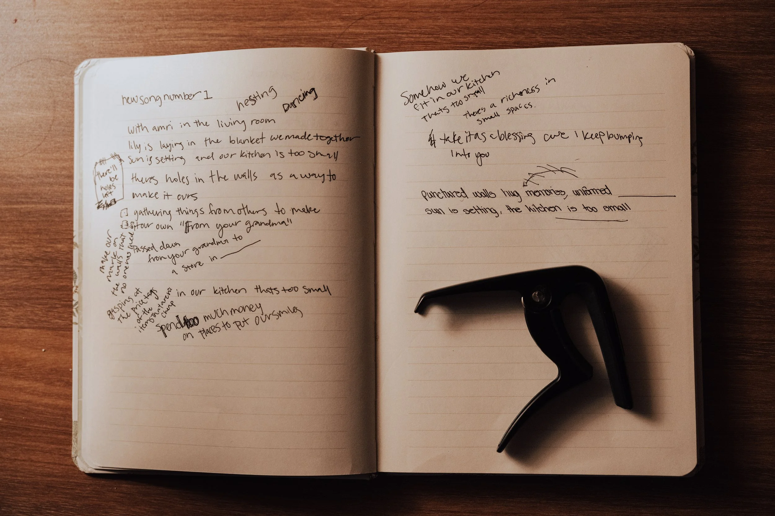 That night they talked about all the picture frames they thrifted and where they’d come from, imagining they were passed down from somebody’s grandma. They are now in their possession, guarding their hallways and helping them transition into a new place. That idea evolved into lyric fragments like “passed down from your grandma / your gentle hands to play the keys” that are finding their way into the new song.